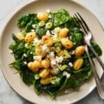 This crispy gnocchi with spinach and feta is a delightful dish that’s both simple and flavorful. It combines golden, crispy gnocchi with fresh greens, herbs, and tangy feta for a perfect balance of textures and tastes. Ideal for a quick weeknight meal or a light dinner.