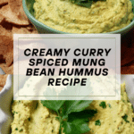 Keywords: mung bean hummus, curry hummus, vegan dip, healthy appetizer, Indian spiced hummus, mung bean recipe