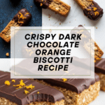 A delightful recipe for Dark Chocolate Orange Biscotti combining the zesty brightness of fresh orange with the rich bitterness of dark chocolate. This twice-baked Italian cookie is crunchy, nutty with walnuts, and perfectly sweetened with brown sugar and aromatic cinnamon. Finished by dipping in melted semi-sweet chocolate, it’s an elegant treat perfect for coffee or tea time.