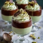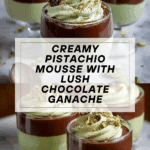 This Decadent Pistachio Mousse with Rich Chocolate Ganache is a luxurious dessert featuring finely ground pistachios blended into a creamy mousse, topped with a smooth dark chocolate ganache. Perfect for those who love the nutty flavor of pistachios combined with the richness of dark chocolate, this dessert is both elegant and indulgent.