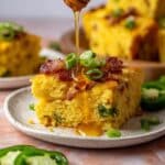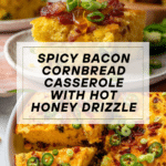 Keywords: cornbread casserole, gluten-free cornbread, bacon cornbread, jalapeño cornbread, easy casserole recipe, hot honey drizzle