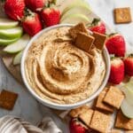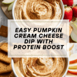 This Easy Pumpkin Cream Cheese Dip is a delicious and healthy fall-inspired treat that combines creamy Greek yogurt, pumpkin purée, peanut butter, and warm pumpkin pie spices. Perfectly sweetened with maple syrup and enriched with protein powder, it makes a nutritious snack or party appetizer served best with fresh apples, strawberries, or cinnamon-flavored crackers.