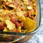 - Step 3: Spread an even layer of tortilla chips in a 9 x 13 casserole dish.