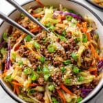 This Egg Roll In A Bowl recipe is a quick and flavorful 15-minute dinner that captures the delicious taste of egg rolls without the need for wrappers. Featuring ground pork, fresh garlic, ginger, and a vibrant coleslaw mix, this one-pan dish is seasoned with coconut aminos and toasted sesame oil for an authentic Asian-inspired flavor. It’s an easy, low-carb meal perfect for busy weeknights.