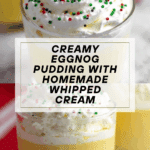 Keywords: eggnog pudding, holiday dessert, creamy pudding, whipped cream topping, festive dessert, eggnog recipe