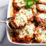Store leftover Eggplant Parmesan covered in the refrigerator for up to 3 days. Reheat in a 350° F oven until warmed through to keep the breading crispy, or microwave covered for convenience but expect softer texture.