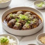 Enoki Beef Rolls are deliciously savory Japanese-style rolls featuring tender thinly sliced beef wrapped around delicate enoki mushrooms and simmered in a flavorful sauce made with dashi, mirin, soy sauce, and a touch of sweetness. Caramelized onions add a rich depth of flavor, and scrambled eggs poured over the top create a silky finish. Garnished with green onion and toasted sesame seeds, this dish is perfect served with steamed rice for a comforting and elegant meal.