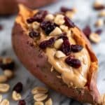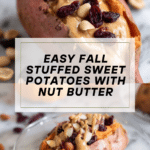 Keywords: fall sweet potato recipe, stuffed sweet potato, nut butter sweet potato, autumn snack, healthy fall snack