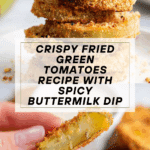 Keywords: Fried Green Tomatoes, Southern recipe, appetizer, crispy fried tomatoes, cornmeal crust, buttermilk batter