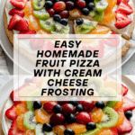 This Fruit Pizza features a tender sugar cookie crust topped with a creamy cream cheese frosting and a vibrant assortment of fresh sliced fruit. It’s a delightful and visually appealing dessert perfect for gatherings and celebrations.