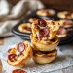 These Garlic Bread Mini Pizzas are a fun and easy twist on classic pizza, made in a muffin tin for perfectly portioned, crispy-edged bites. With a buttery garlic base, tangy pizza sauce, fresh veggies, melty cheese, and pepperoni toppings, they are perfect as a snack or party appetizer.