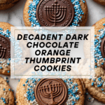 Gelt Thumbprints with Dark Chocolate, Olive Oil, and Orange are delightful cookies that combine the rich flavors of bittersweet chocolate and fresh orange zest with the unique touch of olive oil. Rolled in colorful blue and white nonpareils, these thumbprint cookies feature a festive chocolate center with a classic gelt piece, making them perfect for holiday celebrations or anytime you want a sophisticated, sweet treat.