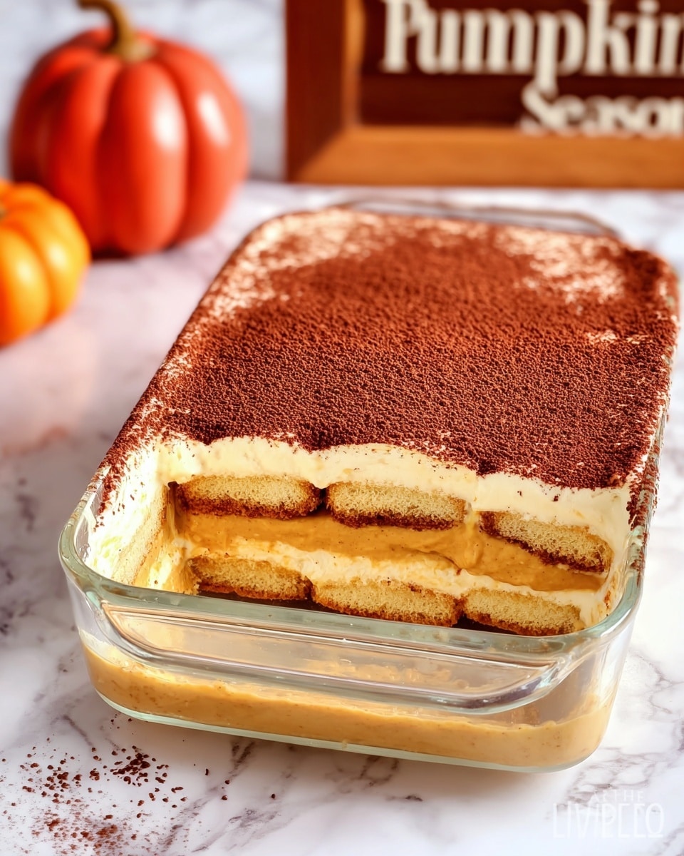 Store the tiramisu covered in the refrigerator for up to 3 days. Let it sit at room temperature for 10–15 minutes before serving to soften the cream slightly. Avoid freezing, as the texture of mascarpone and pumpkin filling may change.