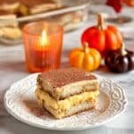 Store the tiramisu covered in the refrigerator for up to 3 days. Let it sit at room temperature for 10–15 minutes before serving to soften the cream slightly. Avoid freezing, as the texture of mascarpone and pumpkin filling may change.