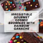 Gourmet Cosmic Brownies are a rich, fudgy treat topped with a smooth chocolate ganache and vibrant rainbow candy chips. Perfect for special occasions or when you crave a decadent chocolate dessert with a fun twist.