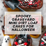 These Graveyard Mini Dirt Loaf Cakes are a spooky and fun treat perfect for Halloween or themed parties. Mini loaf cakes are topped with chocolate frosting, crushed Oreos, and creepy edible decorations for a delightfully eerie presentation.