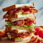 This Grilled Cheese BLT combines crispy bacon, melted cheddar cheese, fresh tomato slices, and leafy lettuce between buttery sourdough bread, creating a deliciously savory and satisfying sandwich with a perfect balance of textures and flavors.