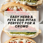 These Herb, Feta and Egg Pitas are a vibrant and satisfying dish perfect for feeding a crowd. Packed with fresh herbs, melted feta, and tender baked eggs with greens, they make a delicious and nutritious meal that’s easy to prepare ahead of time.