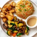 Keywords: hibachi chicken, one pan dinner, stir fry, fried rice, Japanese-inspired, easy dinner, gluten free, coconut aminos, skillet meal
