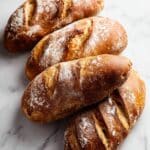 8. Bake: Bake the dough for 20-25 minutes until the crust is golden brown. To test doneness, tap the bottom of the loaves — if they sound hollow, they are done. Alternatively, an instant-read thermometer inserted in the center should read 195°F (90°C).