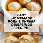 This Homemade Dumplings recipe features a delicate dough wrapped around a flavorful pork and shrimp filling enhanced with napa cabbage, shiitake mushrooms, ginger, and aromatic spices. Served with a savory dipping sauce combining Chinese black vinegar, soy sauce, ginger, and chili oil, these dumplings are perfect for a satisfying appetizer or main dish. The dough is tender yet sturdy, and the filling is juicy and well-balanced, making them delicious to boil and enjoy with the tangy sauce.