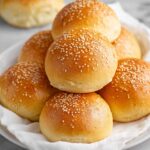 This recipe for homemade hamburger buns yields soft, fluffy, and slightly sweet buns perfect for any burger. Made with warm milk, yeast, butter, and a touch of sugar, these buns have a tender crumb and a shiny golden top, optionally sprinkled with sesame seeds. The process includes kneading dough to develop gluten, allowing it to rise twice for perfect texture, and baking to golden perfection.