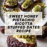 Keywords: stuffed dates, honey pistachio dates, ricotta stuffed dates, easy appetizer, no-cook recipe, Mediterranean snacks