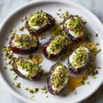 Sweet, creamy, and perfectly nutty, Honey Pistachio Ricotta Stuffed Dates are a delightful treat that’s easy to prepare. This elegant appetizer combines soft Medjool dates with a luscious ricotta filling, enhanced by the crunch of pistachios and the warm sweetness of honey.