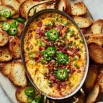 - Serving Tips: Serving this dip warm is essential for its creamy, stretchy texture. To keep it warm, serve directly from the oven, or use a warming plate or slow cooker for the duration of your party. Alternatively, you can mix all the cheese into the dip before baking for a more uniform melted texture if you’re concerned about the cheese firming up when cooled.