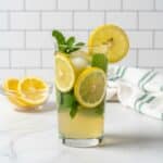 - Muddle the ingredients: In a highball glass, combine the lemon juice, simple syrup (or honey), mint leaves, and lemon round. Use a muddler to gently press and crush the mint leaves and lemon round until the mixture is aromatic and the flavors start to blend.