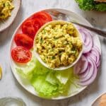 - Serve: Serve the lemon turmeric chicken salad with warm pitas, iceberg lettuce, seasoned tomato slices, and sliced red onion on the side, or assemble into sandwiches for a delicious and fresh meal.