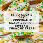Leprechaun Crack is a festive St. Patrick’s Day treat featuring crunchy saltine crackers covered in a rich, buttery toffee, topped with melted white chocolate and colorful green and gold sprinkles. This easy-to-make sweet and salty snack combines crunchy, gooey, and creamy textures for an irresistible party favorite.