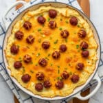 Keywords: loaded baked potato casserole, smoked sausage casserole, cheesy potato skillet, comfort food, party casserole, Yukon Gold potatoes