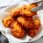 • This batter works well with fish fillets like cod, haddock, or pollock, but also chicken strips or tenders.