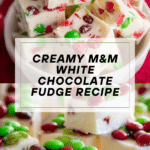 This decadent M&M White Chocolate Fudge combines creamy white chocolate and marshmallow fluff with colorful M&M candies for a sweet, festive treat. The fudge is smooth, rich, and requires no baking—just stovetop cooking to achieve the perfect creamy texture, making it an easy and fun dessert to make for any occasion.