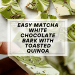 Keywords: matcha white chocolate bark, toasted quinoa, no-bake dessert, chocolate bark recipe, matcha recipe, easy dessert