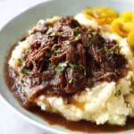 Mississippi Pot Roast is a flavorful, tender slow-cooked beef dish made with a chuck roast, ranch dressing mix, au jus gravy mix, butter, and pepperoncini peppers. This easy recipe yields a rich and savory pot roast perfect for serving with noodles, rice, or mashed potatoes.