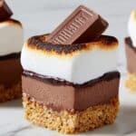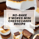 These No-Bake S’mores Mini Cheesecakes combine the classic flavors of graham cracker crust, creamy cheesecake, melted chocolate, and fluffy marshmallow topping. Perfectly portioned in mini pans, they are easy to make without an oven, chilled to set, and garnished with a piece of Hershey’s chocolate for an irresistible treat that echoes the campfire favorite.