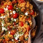 This One Pot Chicken Risoni is a comforting and flavorful meal that comes together with minimal fuss. Tender chicken, fresh vegetables, and creamy feta combine in a rich tomato broth cooked with orzo pasta, making it perfect for a cozy dinner.