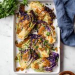 Keywords: oven roasted cabbage, tahini miso sauce, vegan side dish, roasted vegetables, healthy recipe, vegan sauce
