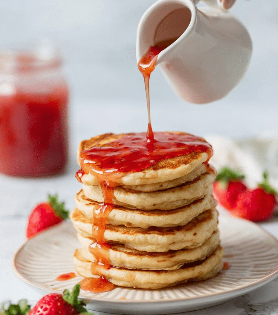 Store leftover pancakes in an airtight container in the refrigerator for up to 2 days. Reheat gently in a skillet or microwave until warmed through. Jelly syrup can be kept in a sealed container at room temperature for a few days but is best when fresh.