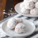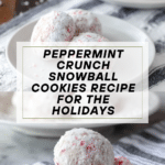 Keywords: Peppermint snowball cookies, peppermint cookies, holiday cookies, peppermint crunch cookies, festive cookies