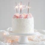 - Decorate with Sparkles and Piping: Gently press cake sparkles or sanding sugar onto the sides and top of the cake for a shimmering effect. Using piping tips 1M and 12, create pink rosettes on the top of the cake and bead borders along the bottom if desired.