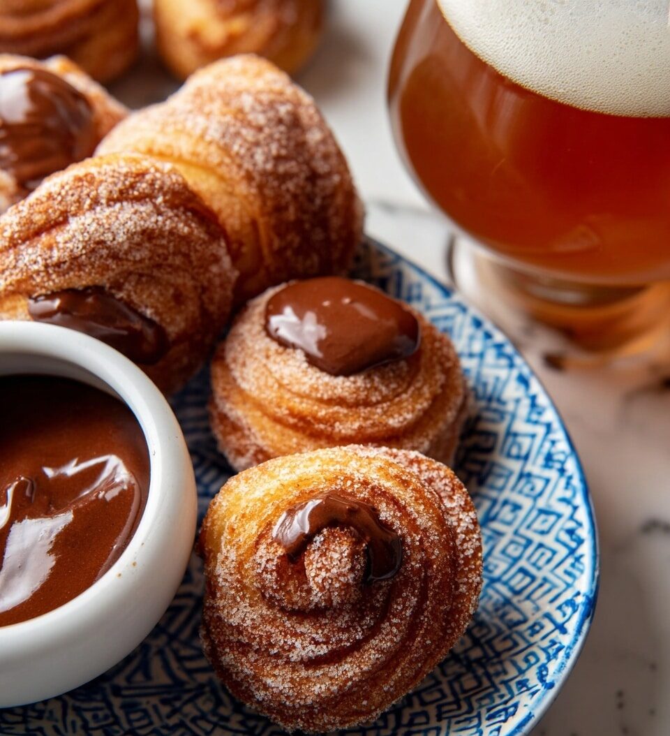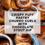 These Puff Pastry Churro Curls are a delightful twist on classic churros, featuring flaky layers of buttery puff pastry rolled with a cinnamon-sugar blend and baked until golden and crisp. Served with a rich and creamy chocolate stout dipping sauce, this recipe balances sweetness with a robust beer-infused depth, making for an irresistible treat perfect for dessert or a special snack.