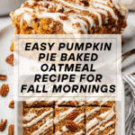This Pumpkin Pie Baked Oatmeal is a deliciously warm and comforting breakfast dish that combines the flavors of pumpkin pie with hearty oats. Perfect for fall mornings, it’s packed with spices and a hint of sweetness, topped optionally with a creamy glaze and chopped pecans for added texture and flavor.