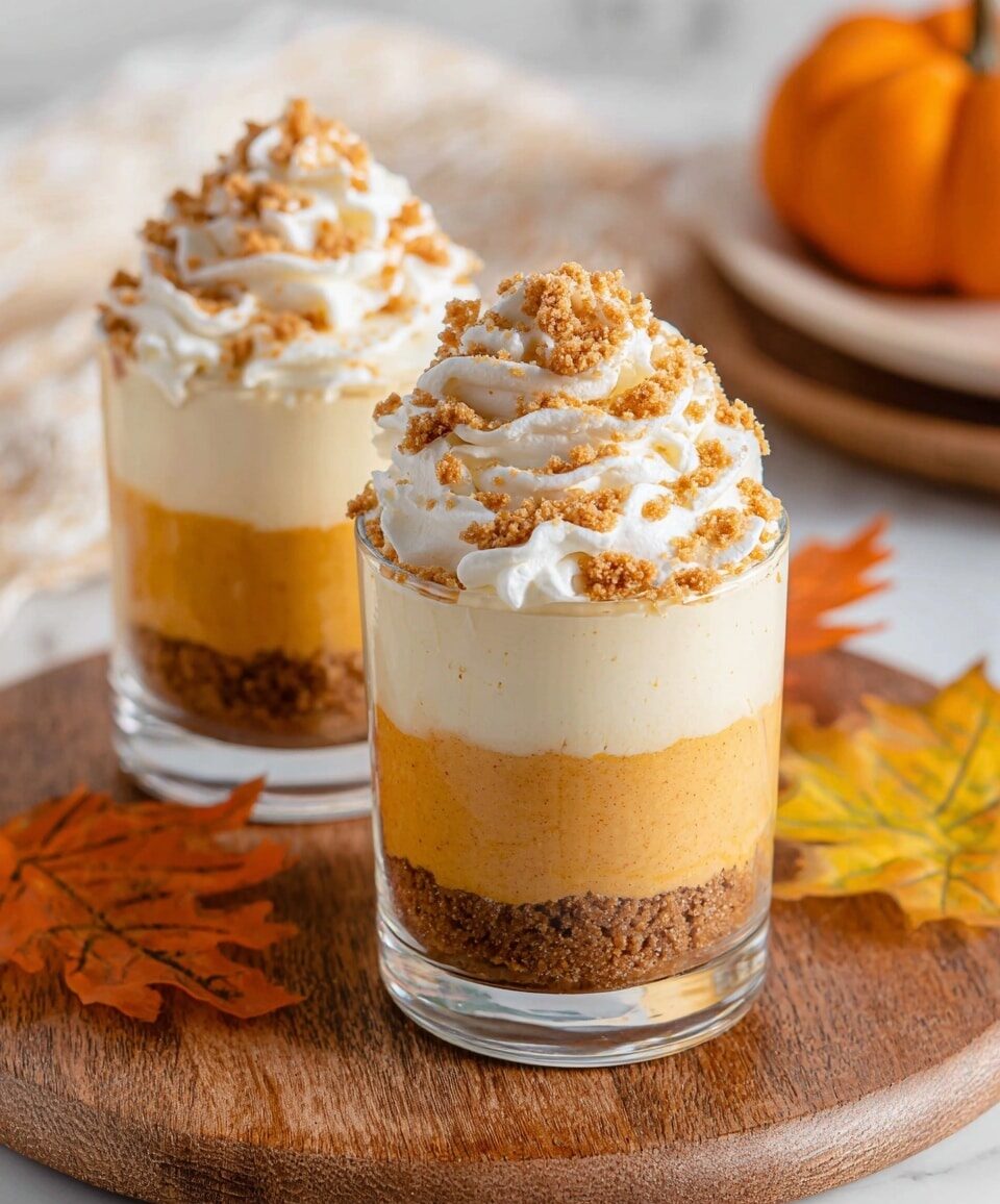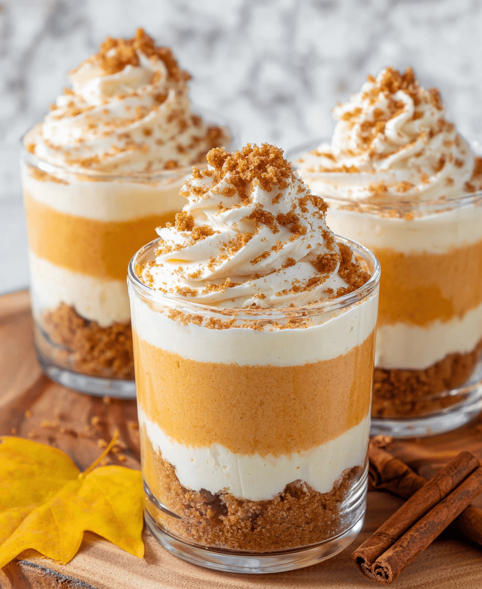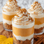 This no-bake Pumpkin Pie in a Cup is a delightful and easy dessert featuring layers of spiced pumpkin cheesecake and crunchy Biscoff cookie crumbs. Perfect for fall or any time you crave the flavors of pumpkin pie without the fuss of baking, this recipe combines creamy pumpkin filling with buttery cookie crusts, all served in convenient individual cups.