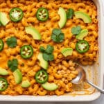 This creamy Queso Mac & Cheese combines sharp cheddar and Monterey Jack cheeses with a smoky chipotle kick for a flavorful twist on a classic comfort food. Featuring a luscious cheese sauce made with cream cheese and spiced with cumin and adobo, this baked macaroni dish is perfect for sharing and garnished with fresh avocado, pickled jalapeños, and cilantro for a vibrant finish.