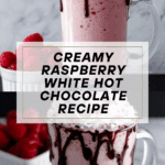 Keywords: raspberry hot chocolate, white chocolate hot chocolate, fruity hot chocolate, raspberry drink, winter beverage, cozy drink