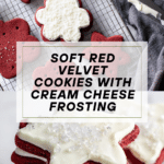 Keywords: red velvet cookies, cream cheese frosting, holiday cookies, soft cookies, red velvet dessert