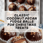 This vintage-inspired Christmas dessert features creamy coconut and pecan balls covered in smooth chocolate. Combining powdered sugar, melted butter, sweetened condensed milk, coconut flakes, and chopped pecans, these bite-sized treats are chilled and then dipped in melted chocolate wafers for a festive, nostalgic holiday treat. Optional toppings like additional pecans, coconut flakes, or sprinkles add a personalized touch.